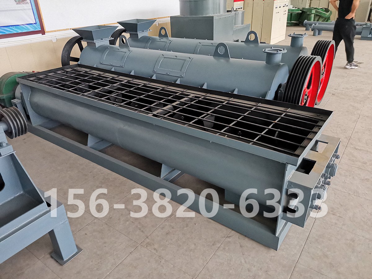 工作原理:當(dāng)干粉狀物料由給料機(jī)定量通過進(jìn)料口均勻進(jìn)入槽體后,動力傳動機(jī)械帶動裝有多組葉片的螺旋形主軸轉(zhuǎn)動,通過對嚙合傳動齒輪帶動被動螺旋軸與主軸作等速相對轉(zhuǎn)動,從而使物料被攪和和并推進(jìn)至槽體加濕段,在物料被推進(jìn)至加濕段后,加濕器自動對物料進(jìn)行噴濕,進(jìn)而至槽體后攪拌段進(jìn)行充分?jǐn)嚭?,?dāng)物料達(dá)到可控濕度后由出料口卸出,進(jìn)入下一道工序。